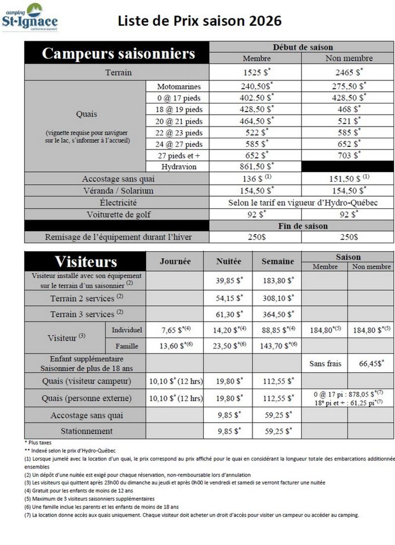 Tarifs et réservations